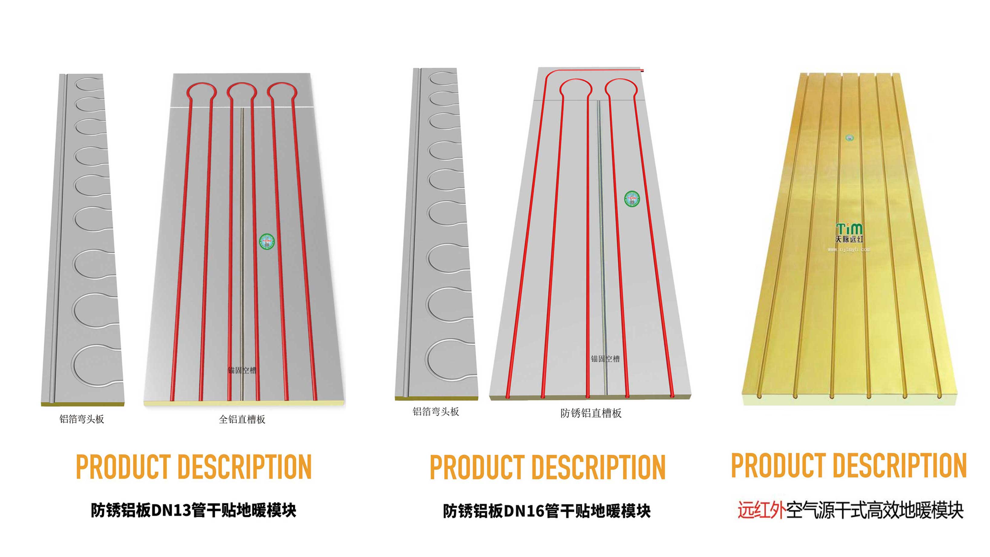 公司產(chǎn)品包括全鋁板環(huán)保干式水/電地暖模塊系列、遠(yuǎn)紅外干式地暖模塊系列、空氣源熱泵高效末端系列、老房快裝地暖系列、汗蒸房墻暖系列。產(chǎn)品入選《百年中國》科技匯編,被中國建筑裝飾裝修材料協(xié)會認(rèn)定為中國綠色、節(jié)能、環(huán)保建材產(chǎn)品。